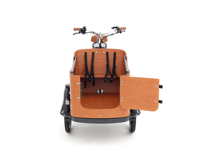 Die Babboe Go Modelle sind im Alltag besonders praktisch zu handhaben. Dank der 3 Laufräder, steht das Go-E Transport-E-Bike jederzeit sicher und kann nicht kippen, und zum Parken hast du eine zusätzliche Feststellbremse zur Verfügung. Dazu ist in der stabilen Holz-Transportbox eine abschließbare Tür eingelassen, die das Ein- und Aussteigen deiner Fahrgäste angenehm einfach macht.