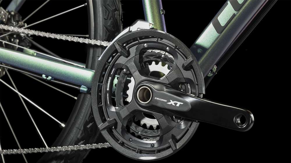 Keine Frage, hoher Fahrkomfort geht nur mit Federgabel, weshalb CUBE dem Nature EXC auch eine Luftfedergabel von Suntour verpasst hat. Sie lässt sich ganz einfach und ganz präzise auf die jeweils gewünschte Mischung aus Komfort und Kontrolle einstellen. Dazu wechselt die zuverlässige XT und Deore 3×10 Schaltung von Shimano leicht und geschmeidig von Gang zu Gang – so wird jede Route und jeder Anstieg zum Kinderspiel. Maximale Bremskraft ist das Spezialgebiet der einfach zu bedienenden hydraulischen Shimano Scheibenbremsen, die bei jedem Wetter kräftig zupacken und das Bike kontrolliert zum Stehen bringen. Jetzt braucht’s nur noch die perfekte nächste Route und los!