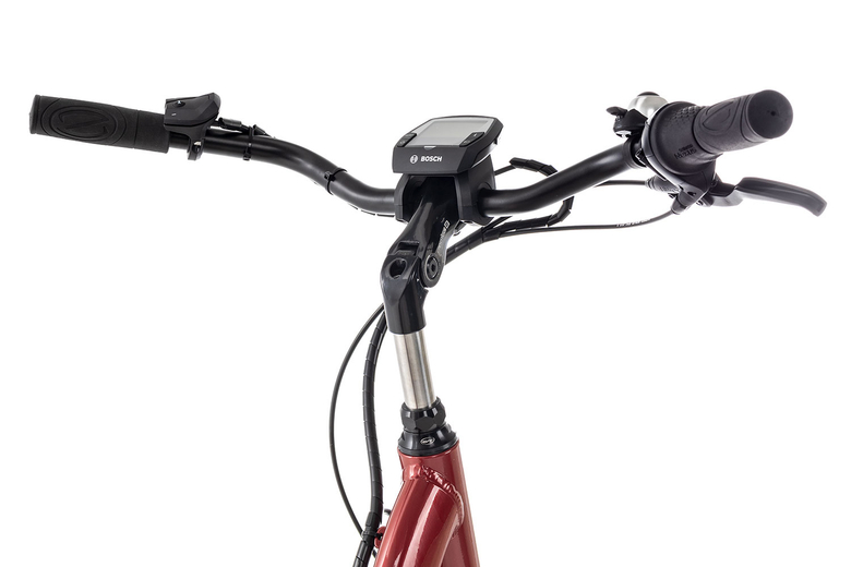 Hier bekommst du das große, gut ablesbare Bosch Intuvia Touren-Display, welches sich schön zentral am Lenker befindet. Der praktisch unter dem Gepäckträger angebrachte 400 Wh Akku und der besonders kraftvolle Bosch Performance Line Motor (65 Nm) sind natürlich ebenfalls an Bord.