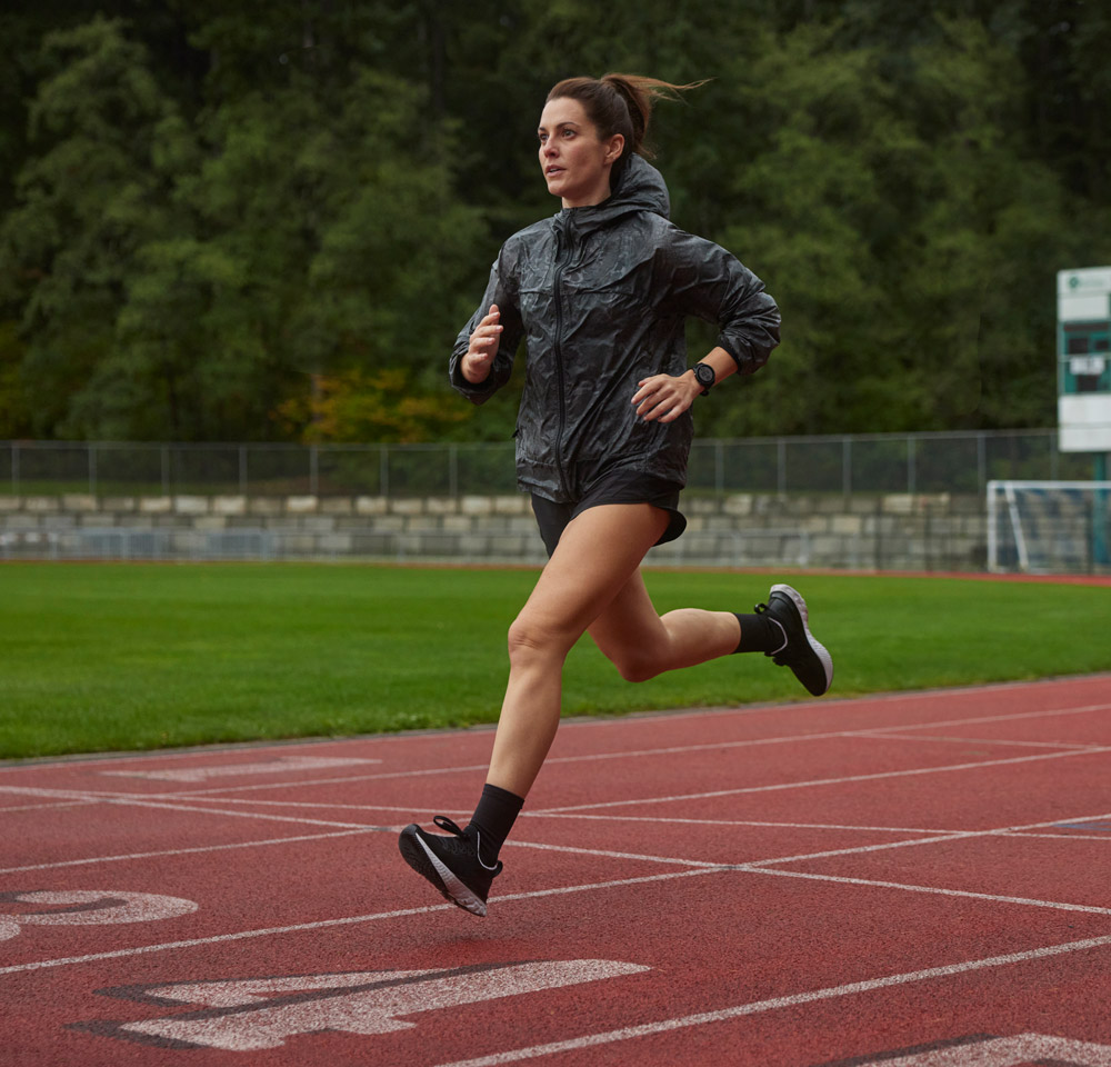Ermittle dank vorinstalliertem Widget deine Laufleistung sowie weitere Laufeffizienzwerte direkt und in Echtzeit auf der Uhr (in Verbindung mit einem kompatiblen Brustgurt oder Running Dynamics Pod)