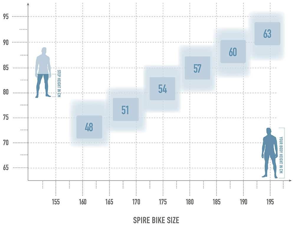 Mit Hilfe unserer Grafik wollen wir Dir eine Empfehlung bei der Suche nach Deiner richtigen Rahmengröße geben. Neben Schrittlänge sowie Körpergröße spielt natürlich auch Dein persönlicher Fahrstil, Einsatzbereich sowie Vorliebe eine große Rolle. Wenn Du mit Deinen Angaben im Grenzbereich liegen solltest, kannst Du zwischen zwei Rahmenhöhen wählen: die kleinere Rahmengröße ist agiler/wendiger/verspielter, die nächstgrößere Rahmenhöhe laufruhiger/spurtreuer.
